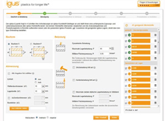 iglidur® expert 2.0: Tìm kiếm trực tuyến và tính toán tuổi thọ