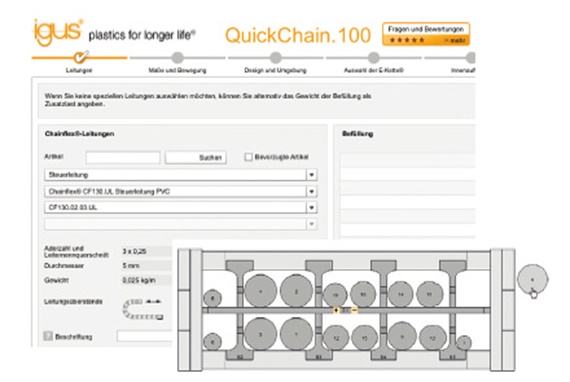 igus® đã giới thiệu energy chain đầu tiên làm bằng chất dẻo cách đây 43 năm; ngày nay công ty cung cấp loạt dây chuyền nhựa lớn nhất có phạm vi cáp linh hoạt rộng lớn nhất trên thế giới. Để duyệt qua phạm vi rộng lớn, khách hàng có thể dùng một công cụ trực tuyến để lựa chọn dễ dàng dây chuyền của mình cùng với cáp và mối nối và thậm chí tính toán thời hạn vận hành. Ngày nay, igus® là một nhà cung cấp hệ thống về cung cấp năng lượng. Các hệ thống readychain® được cung cấp dưới dạng đơn vị hoàn thành, lắp ráp theo yêu cầu.