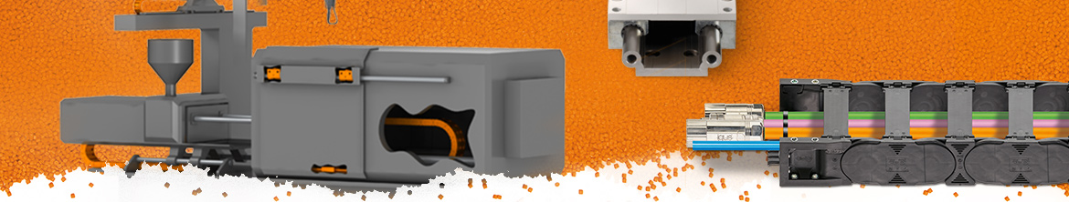 When supplying energy to machines for the processing of plastics, high loads, accuracy and high temperatures are important. By using plastic energy chains in blown film lines, injection moulding machines or extruders, you can protect the cables and hoses. Even with heavy fillings, plastic e-chains® have their advantages: