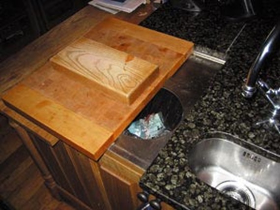 Kitchen chopping board slide to acess bin